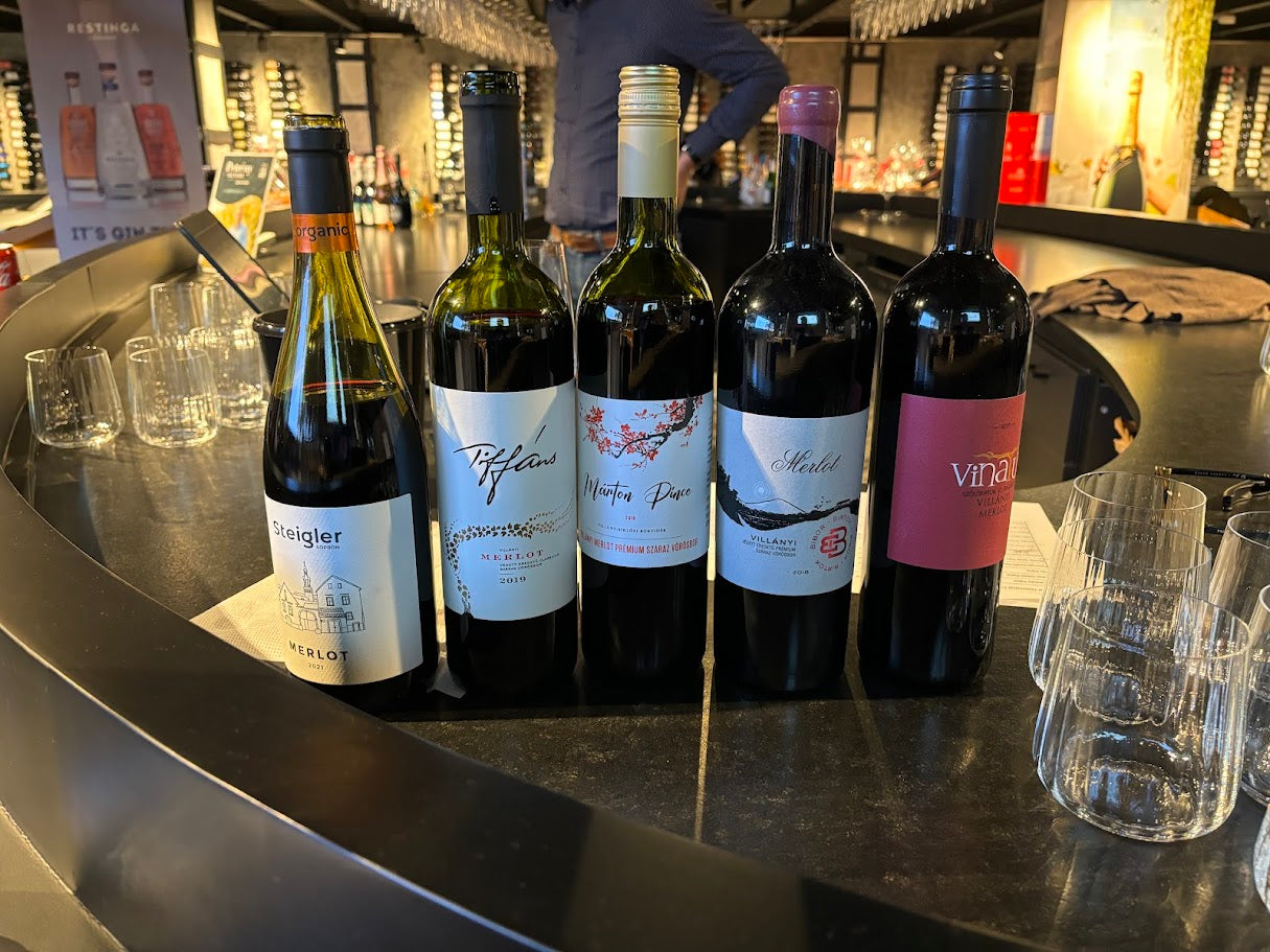 Vi kommer langsomt til at bevæge os op ad kvalitets-stien, med de tre forskellige Merlot der skal smages på. Først skal vi smage på en relativ simpel, men stadigvæk fadlagret Merlot fra 2017 – produceret i det varme syd, nemlig Villány. Derefter rejser vi hele vejen op til Østrigs grænse, nemlig til regionen Sopron, som normalvis er kendt for deres Kékfrankos – men i denne omgang har produceret en skøn organisk Merlot, fra den relativt nye årgang 2021. Til sidst kommer svendestykket i denne måneds destination: